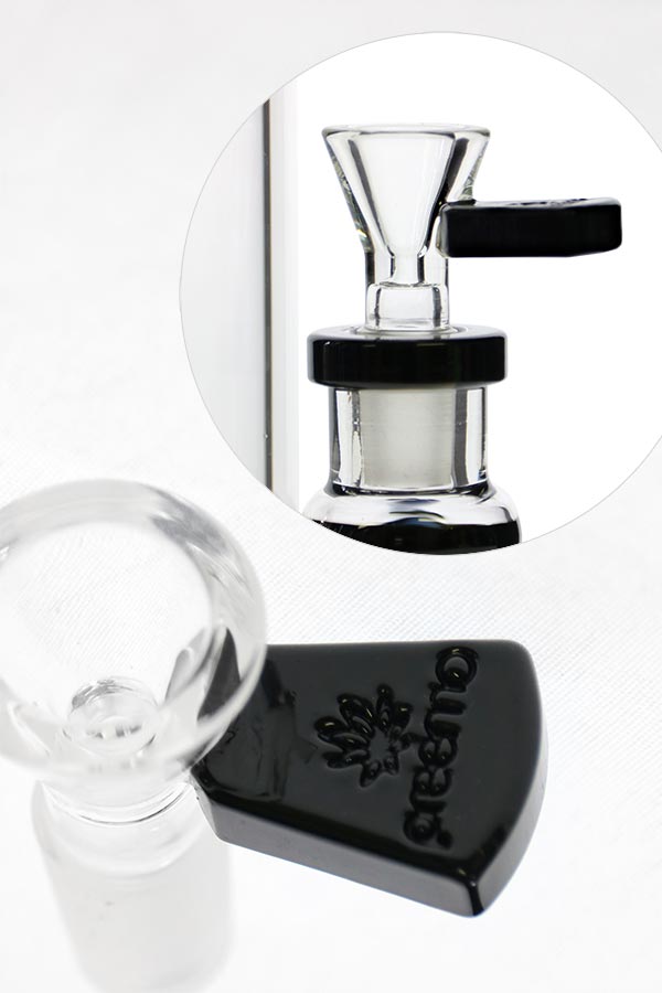 The attachment of the bowl handle which is actually on the bowl itself, as opposed to the lower joint section, makes it much more durable than most regular bowl designs. The shoulder-less intake hole allows for a smoother airflow without ridges constricting the combustion process.